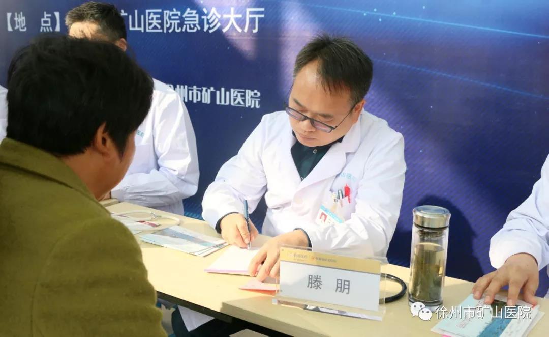 义诊现场,原北京安贞医院,现华润医疗润华心康医生集团合伙人陈雷博士(徐州市矿山医院副院长)、张晶博士、高峰博士,徐州市矿山医院心内科刘正强主任,滕朋副主任医师为每一位前来问诊的患者仔细听诊、询问病情,不厌其烦地解答患者和家属的疑惑;心电图室的工作人员细心地为每一位患者做心电图诊断与筛查;润心志愿们仔细为每位患者进行登记、为家属解疑答惑、保证每位患者都能得到专家的诊治。