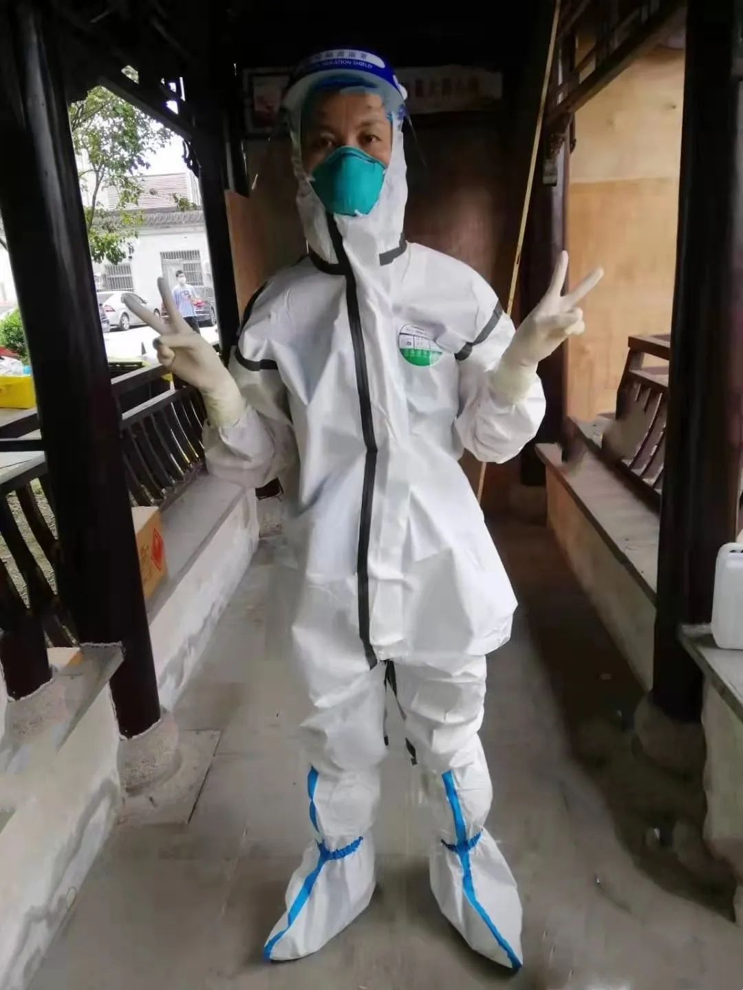 为了减少上厕所次数,他们不敢喝水,防护服内潮湿闷热,浑身像从水中捞出来。“我感觉在扬州工作一段时间,我肯定会瘦的,自然减肥,效果不错”。