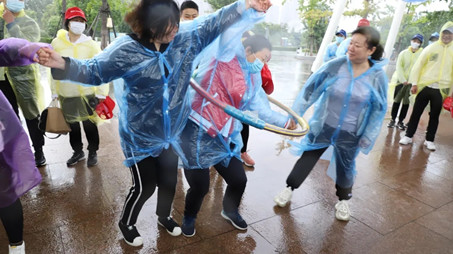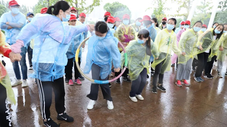 为了熔炼团队,激发斗志,四支队伍分别进行了“无敌风火轮”游戏的比拼,趣味、挑战与考验并济。