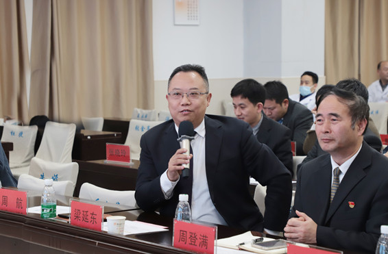 院长梁延东做导入发言:今年是我院建院六十周年,一直以来我们始终心系大众健康,践行仁心仁术·康泽天下的使命,坚持医疗传承与创新发展,也在逐步转变科研教学的管理理念。为了医院的高质量发展,我们注重学科新技术、新业务的开展,医教研全方位的发展打造浓厚的学术氛围。组织召开本次学术年会,就是为了来自各科室的同仁搭建一个学术交流与学习的平台,让各科室的学术精英可以在这个平台上为大家展示自己的研究成果,分享创新思维和先进技术,通过这个平台大家可以收获到更多的新知识、新理念和新技能,对于日后的工作领域和专业拓展新思维、新进展会有所帮助,并预祝本次首届学术年会圆满成功。